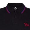Black , White and Grey Marl Polos are 100% Cotton Pique Fabric 220 Gsm and Flat Knit Collars with Contrast Multi Colours Stripes. Hi standard Polo Shirts.