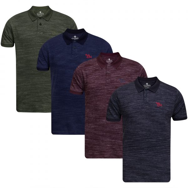 Men Polo T Shirts Pack of 4 with Signature Logo Embroider and Honeycombed Collar & Cuffs.