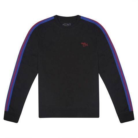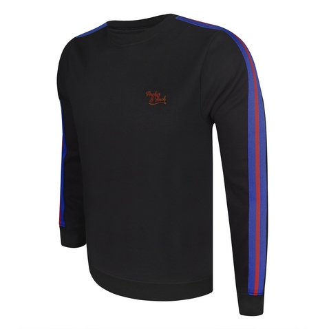Sweatshirts for Men Crew Neck Fleece Sweat Shirt Top with Logo Embroidery and Knitted stripes Tape on Sleeve. Regular UK Fitting Sizes S M L XL XXL XXXL