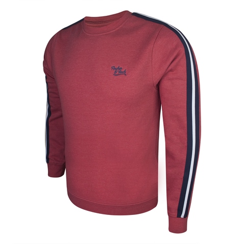 Sweatshirts for Men Crew Neck Fleece Sweat Shirt Top with Logo Embroidery and Knitted stripes Tape on Sleeve. Regular UK Fitting Sizes S M L XL XXL XXXL