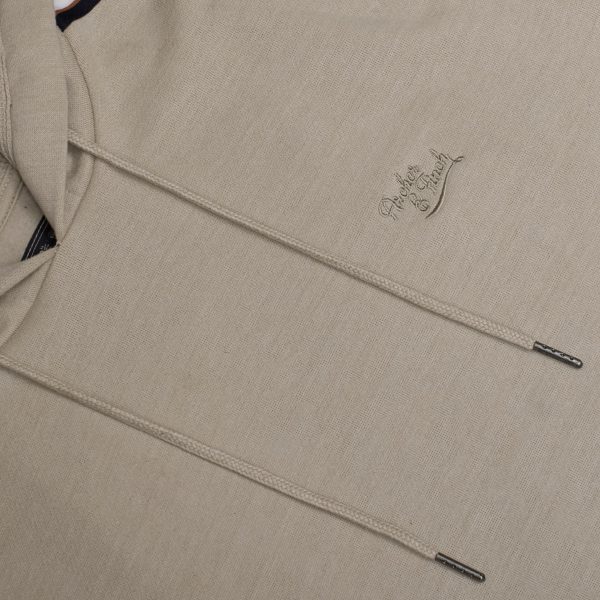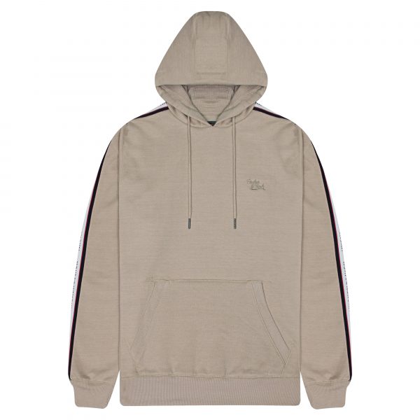Men Hoody Brushed back Fleece Peached Finished with Tricot Logo Printed Tapes on sleeves. Signature Logo Embroidery. 2×2 Rib elastane at Cuff and bottom. Inner Hood Waffel Lining.